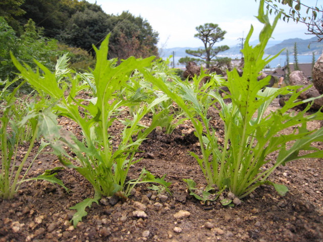 The mizuna is growing.
